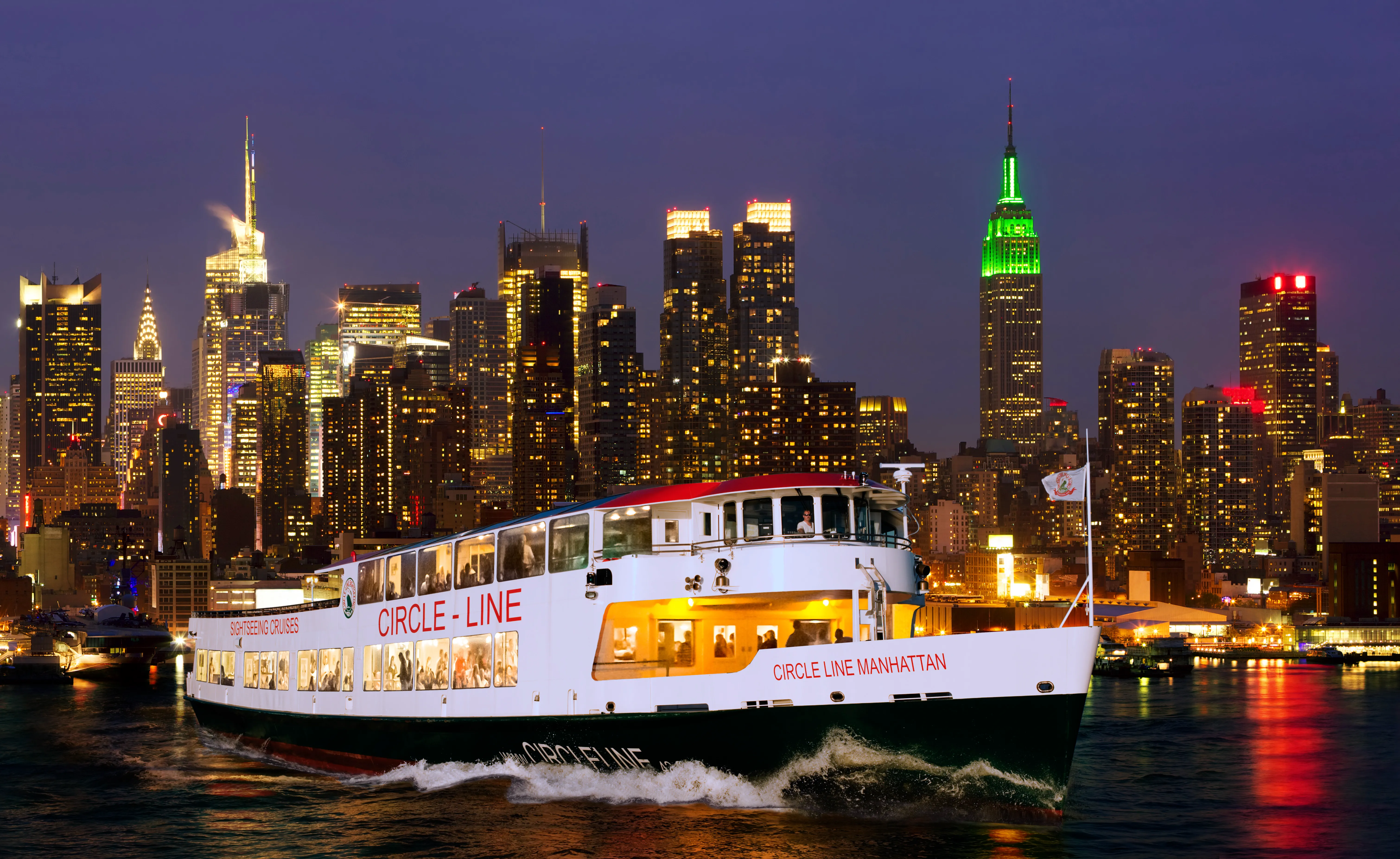 Unwind on an evening cruise with illuminated skyline views and photo ops.